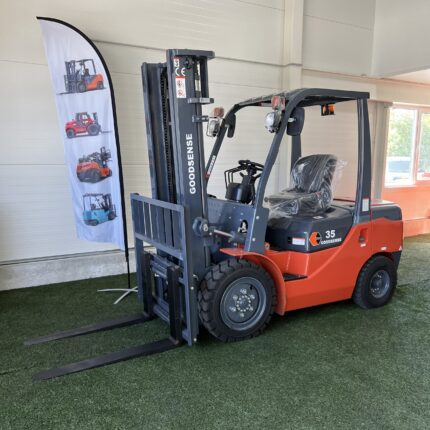 They have excellent stability because the centre of gravity is in the middle of the machine and the weight of the goods is evenly distributed on the sides of the loader. This reduces the likelihood of the goods or the loader tipping over or damaging anything.